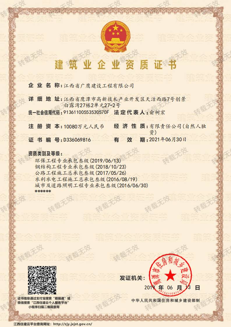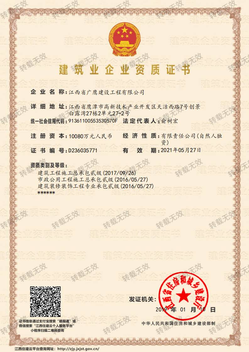 您好!欢迎来到 江西省广鹰建设工程有限公司 官方网站!
